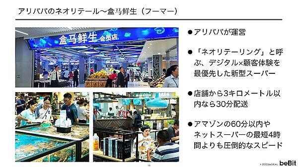ちなみに、フーマーを運営しているアリババはAlipayのデータを持っている。つまり、出店計画の際、3km圏内に住んでいる人が、どの店で、どの商品を、どのくらいの頻度で買っているか、ほぼ把握しているということだ。近くの魚屋や八百屋での買い物がフーマーに置き換わると売上がどのくらいになるか予測したうえで出店しているのだから、失敗するはずがない。