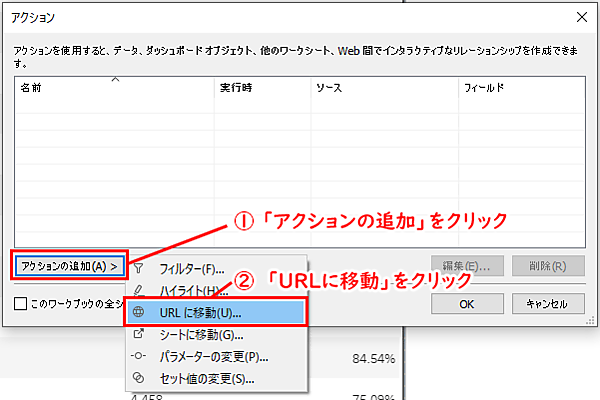 木田: 同様に、「アクションの追加」から「URLに移動」を選択します。