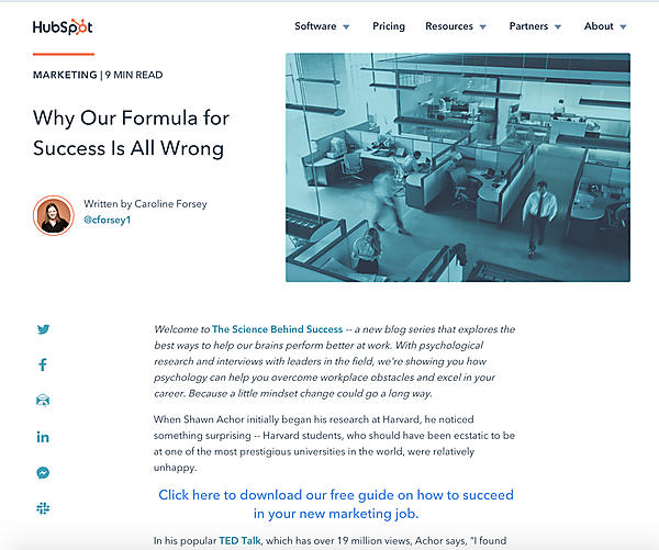専門家からのフィードバックを取り入れることで、検索結果ページ(SERP)の競争で優位に立てる可能性もある。たとえば、HubSpotは次のような記事を公開した。