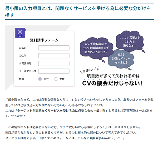 かつて知られていなかったような画期的な施策を提案しているわけでは決してない。しかし、これらの施策を実際に確実にできているサイトが多いとは思わない。フォームをサイト内に設置しているなら確実に参考になる。