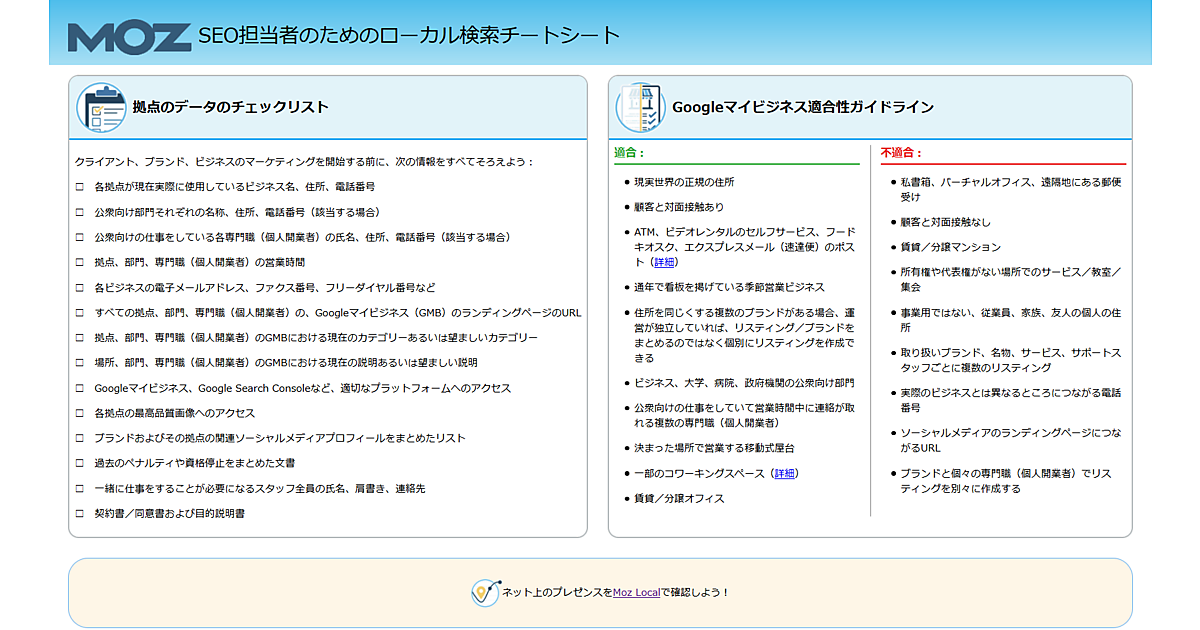 - 日本語版「SEOのローカル検索チートシート」(HTML版)