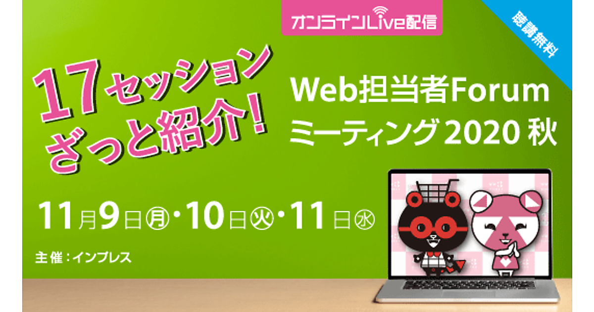 Web担当者Forumは、11/9(月)~11/11(水)の3日間でオンラインセミナー「Web担当者Forum ミーティング 2020 秋」を開催します。