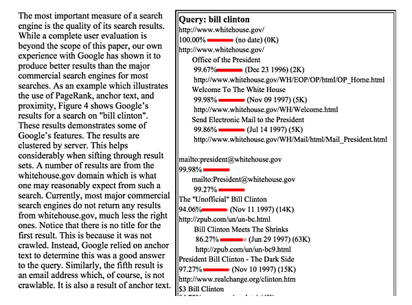 この当時ウェブを使っていなかった人は、グーグルのPageRankベースのアルゴリズムが当時「最先端」の技術をいかに劇的に改善したかを想像するのは難しいかもしれない(ウェブを使っていた僕たちでさえ、あまり覚えていない)。