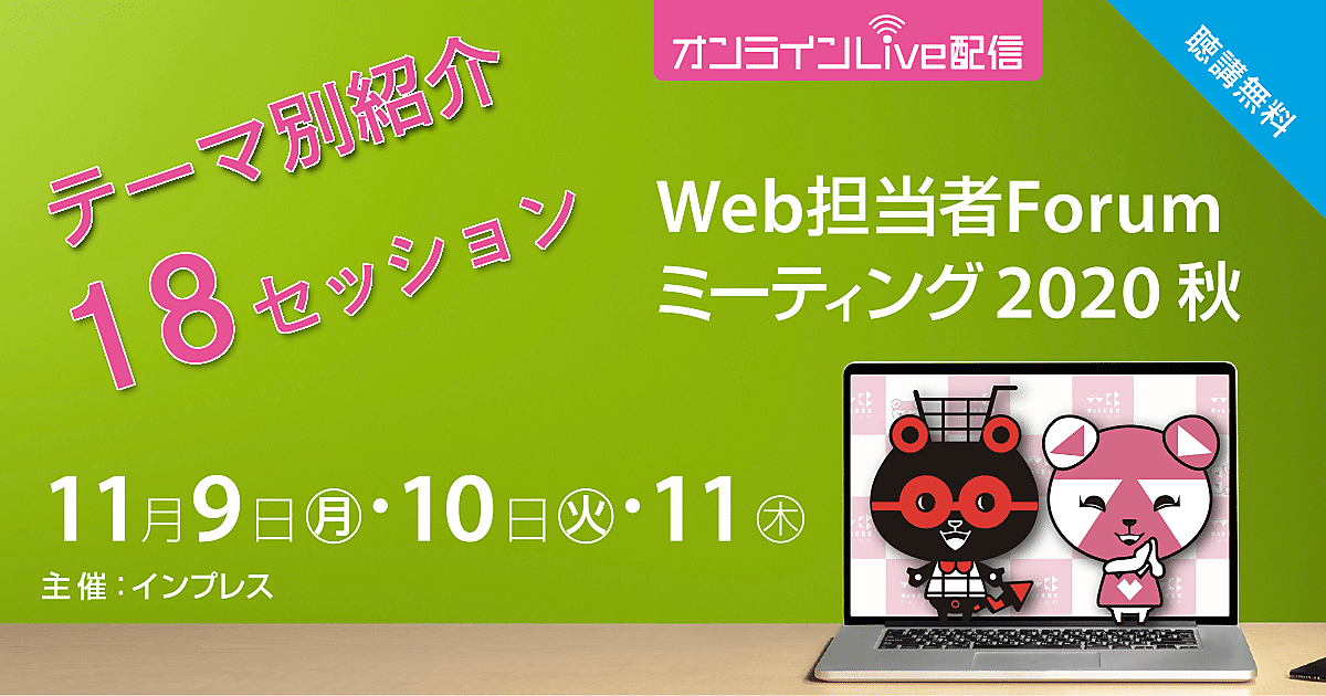 いよいよ来週開催! Web担当者Forumが、11/9(月)~11/11(水)の3日間で行うオンラインセミナー「Web担当者Forum ミーティング 2020 秋」。