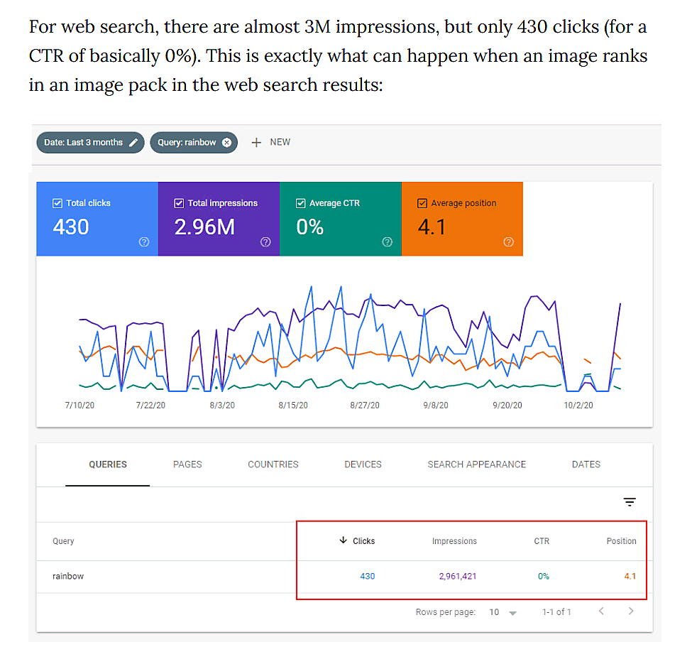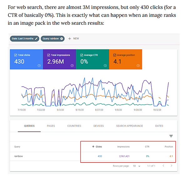 ウェブ検索で表示回数が300万回近くあるにもかかわらず、平均CTRは実質0%だ。なぜこうしたことが起きるのだろうか?