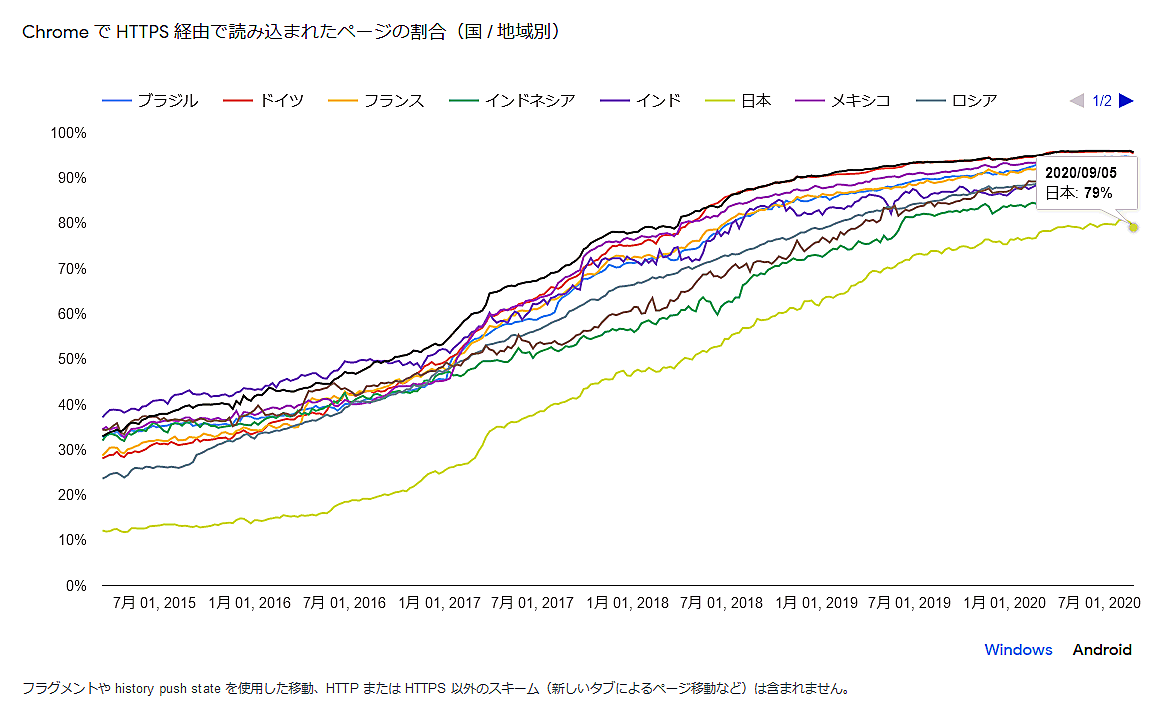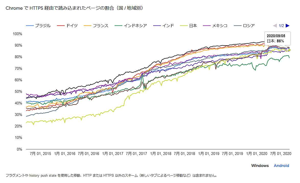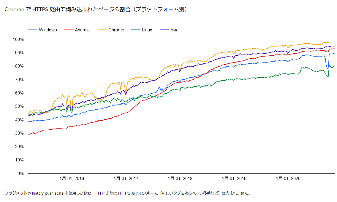 - Windows版ChromeがHTTPS 経由で読み込んだページの割合: 94%