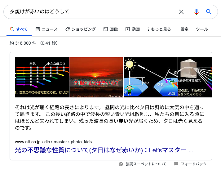 さらに、強調スニペットの画像も複数のサイトから選ばれることがある(強調スニペットの説明と画像が別々のサイトからの場合がある)。