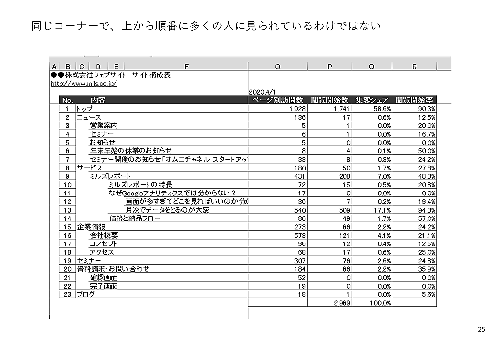 同じような情報でも、サイト構成にしたがっていれば、見えてくるものが変わります。次の表を見てください。