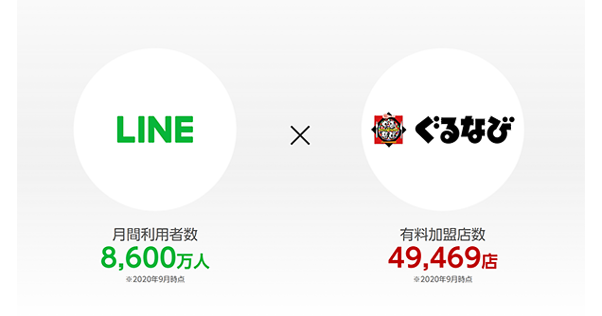 ぐるなびは、会員数が1,935万人(2020年9月時点)、MUU(ユニークユーザー数)は5,600万人(2019年12月時点)を誇る飲食店メディアプラットフォーム。今回の連携によって、LINEのユーザーとぐるなびの加盟飲食店をLINE上でつなげることが狙いだ。