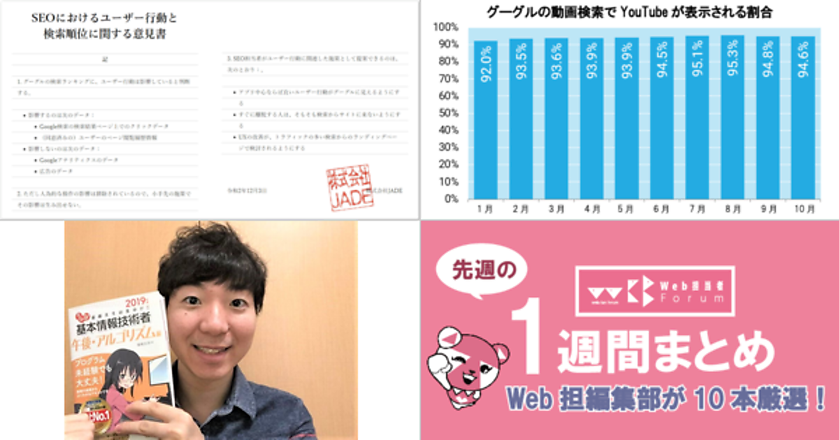 Web 担当者 Forum に掲載された情報を毎週一度、まとめてご紹介するこのコーナー、今回は解説記事 5 本とニュース記事 5 本です。