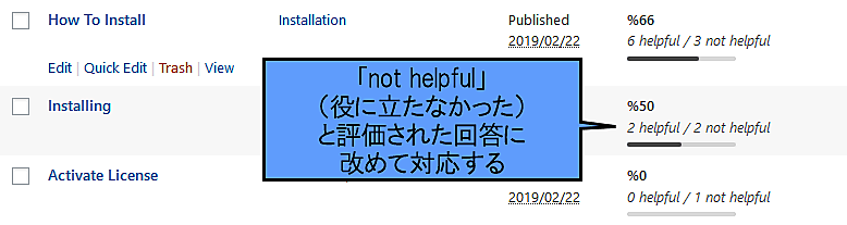 最後に、FAQにあるすべての回答についてユーザーからフィードバックを収集すれば、さらに役立つ回答を生み出すのに役立つだろう。これも、事前構築済みのほとんどのFAQソリューションではこのオプションを備えているが、(これのように)独立したプラグインもある。