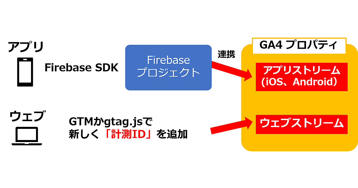 今までもFirebase をGoogle アナリティクスへリンクすることでGoogle アナリティクス for FirebaseをGoogle アナリティクスのプロパティとして利用できました。