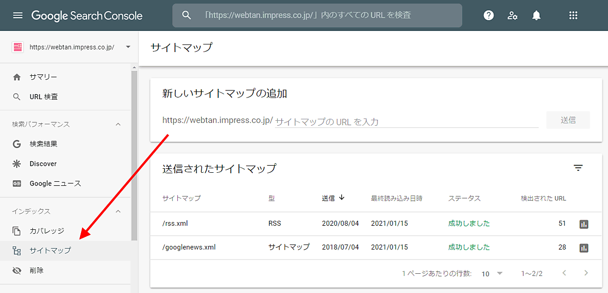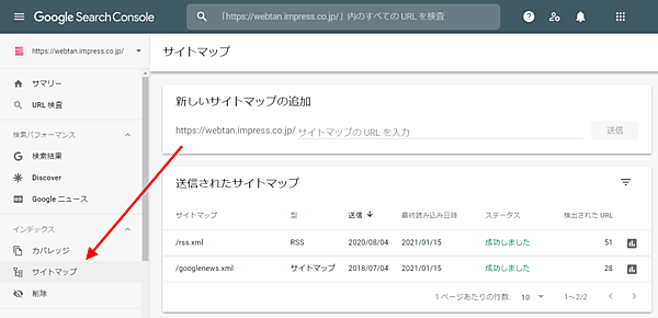 - Search Console サイトマップ