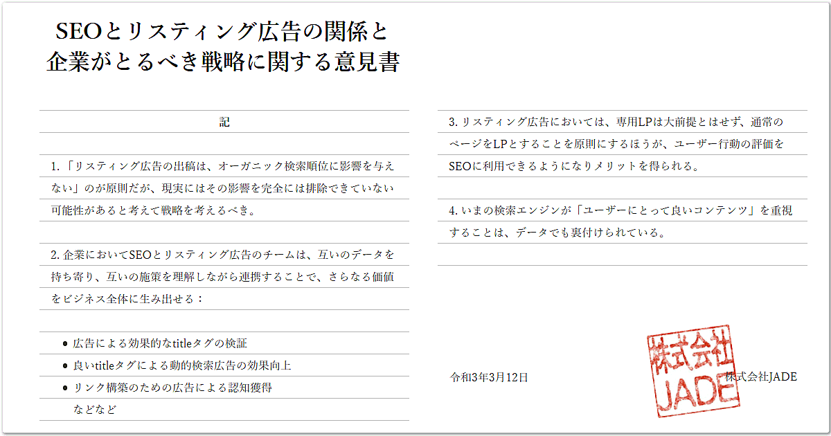 SEOとリスティング広告の関係と企業がとるべき戦略に関する意見書