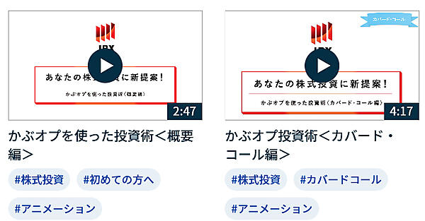また、個々の動画には「#株式投資」「#プット買い」「#金」「#プラチナ」などのタグを付け、興味のある内容の関連動画を簡単に探せるようにした。