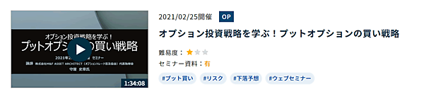 北浜投資塾では、毎月1回程度、対面セミナーやWebセミナー(ウェビナー)も開催している。そのうち、講師の許可が取れたものについてはアーカイブ動画をサイトに掲載するようにしている。この場合は1時間超えの長尺でも掲載している。