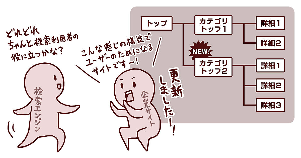肝心なことは、検索エンジンはただ「どのページにキーワードが書かれているか」を捉えているのではなく、「このサイトはどんな構造をしているか」を学んで、それが検索利用者に役立つものかどうかを判断しようとしていることです。