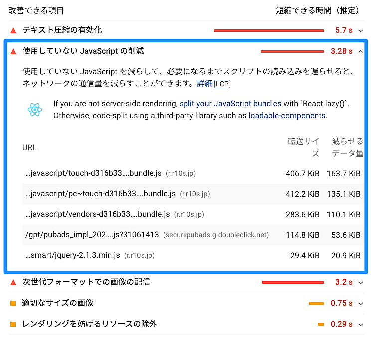 読み込まれたものの使われていないJavaScriptを削除したところ、コア ウェブ バイタルの状況が劇的に改善した事例をツイッターに投稿したサイト管理者がいた。