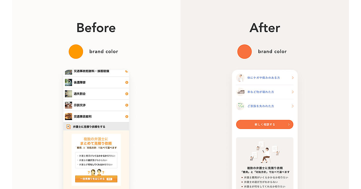 サービスの開始は2005年で、15年以上が経ちました。利用者も増えましたが、「弁護士をもっと身近に」というコンセプトを満たすには、今よりもさらに気軽に利用してもらいたいという考えがありました。弁護士に相談するようなトラブルを抱えた人に、もっと心置きなく利用してもらえないか。トラブルが深刻になる前に相談してもらえないか。今まで利用に抵抗を感じていた人たちにも受け入れられないか。それをデザインで解決できないか。そんな話が持ち上がっていました。