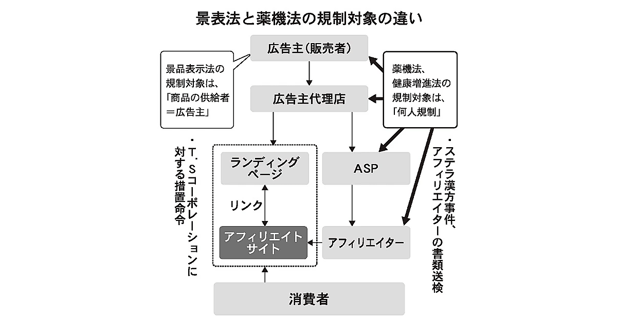 ――景表法の規制対象は、あくまで商品・サービスの供給者。アフィリエイターの問題点に触れているが、規制対象にはならない。