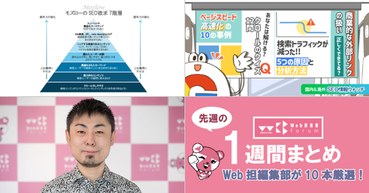 Web 担当者 Forum に掲載された情報を毎週一度、まとめてご紹介するこのコーナー、今回は解説記事 5 本とニュース記事 5 本です。
