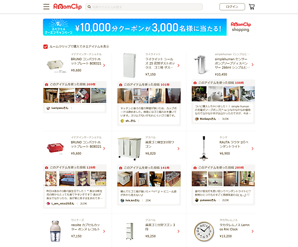 ユーザーから投稿されたインテリア写真には、どんな家具や照明を使っているかの情報が紐付けられる。これを見た別のユーザーは、気にいった商品を見つけ、情報をクリックすればそのままECサイトへ遷移して、購入ができる。