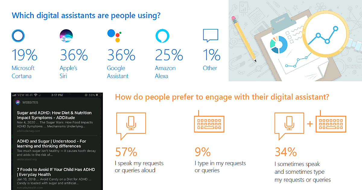 しかし、まるで音声が従来の検索エンジンの結果ページを凌駕しつつあり、SEOの役割における文章にすべて取って代わろうとしているかのように考えて、コンテンツの優先順位を付けるべきだというわけではない。