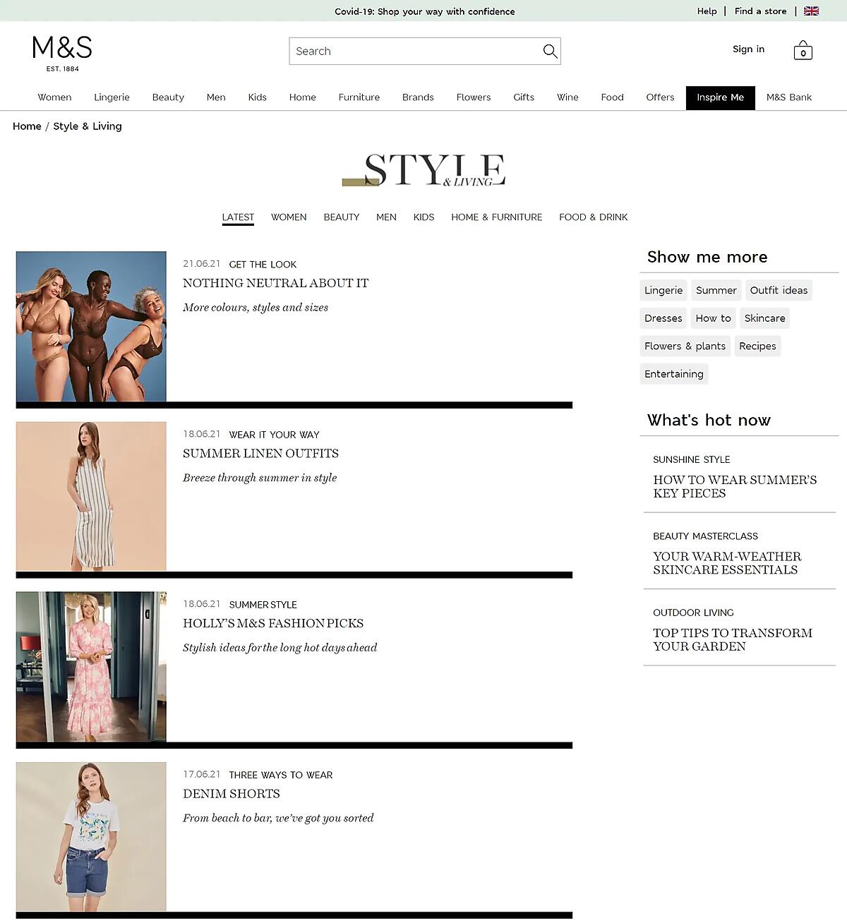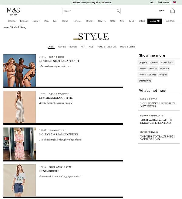 たとえば、次に示すのは英国の小売であるマークス&スペンサーの「Inspire Me」セクションの例だ: