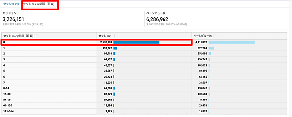 井水:初回訪問も含みますが、※セッションの間隔「0」が250万を超えてますね! めちゃくちゃ見られていますね。