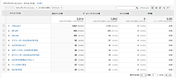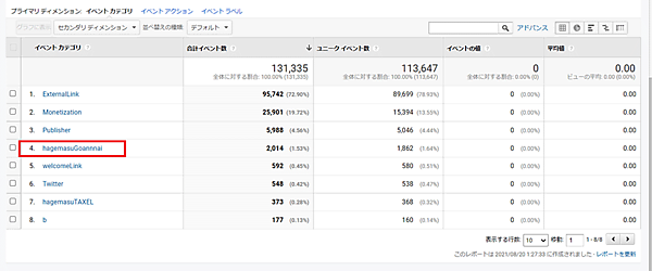 井水:ここは設定したときにラベル名のルールを覚えておかないと分析がとても手間取ります(笑)! ただ現状でもわかることとしては、はげます会ページへのリンクは特定のボタンに集中しているということですね。