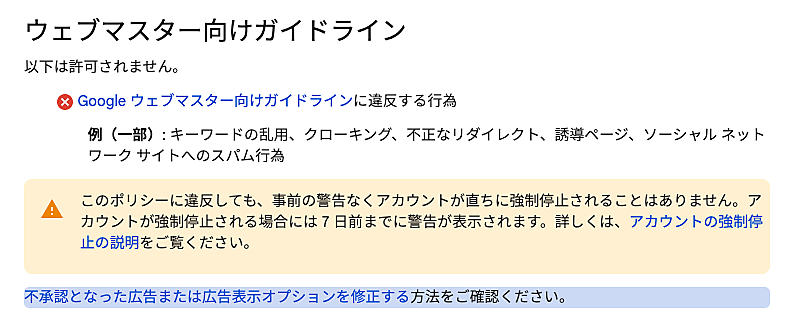 ウェブマスター向けガイドラインに違反すると広告が停止される場合も