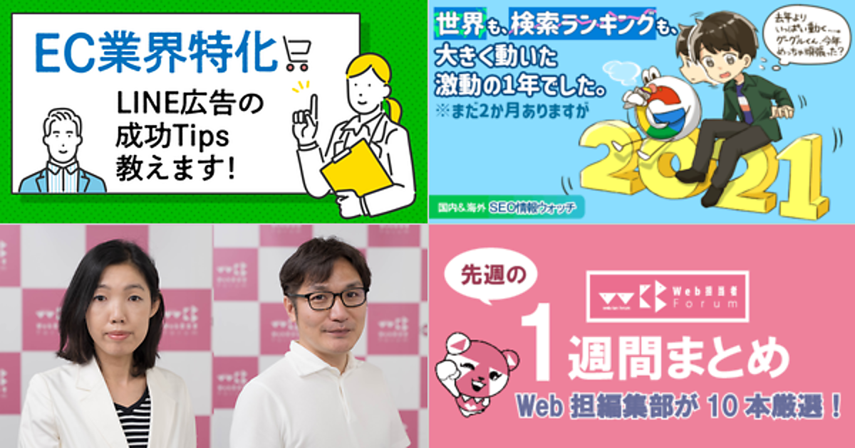 Web 担当者 Forum に掲載された情報を毎週一度、まとめてご紹介するこのコーナー、今回は解説記事 5 本とニュース記事 5 本です。