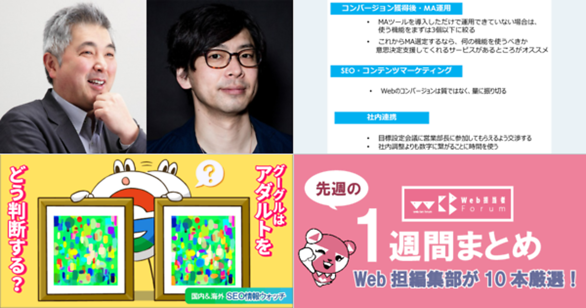 Web 担当者 Forum に掲載された情報を毎週一度、まとめてご紹介するこのコーナー、今回は解説記事 5 本とニュース記事 5 本です。