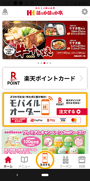 百岳: はい。最近では、若年層から「ほっかほっか亭に入るのは緊張する」といった声もいただくんです。どうやら注文するのに、店員と話すのがネックなようです。そこで、2021年1月から全店でモバイルオーダーを取り入れ、アプリ上で注文から決済までできるようにしました。注文した品は指定時間に受け取るだけですので、緊張することなく購入できるようになったと思います。楽天ポイントと連携しているのもあり、既存のお客様からは好評です。しかし、新規のお客様に「まずは食べていただく」というファーストステップを取っていただくのが難しく……。アプリを開発したものの、ダウンロードしてもらうまでのハードルの高さを感じていました。