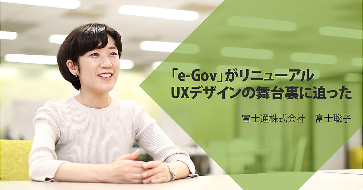 「e-Gov(イーガブ)」※は、2020年11月に10年ぶりにリニューアルされました。人間中心設計プロセスに沿ってデザインすることがプロジェクトの条件になるほど、ユーザーの体験を重視して生まれ変わったという。国民と行政を橋渡しするサービスのUX向上はどのようにして行われたのか? リニューアルのデザインチームのリーダーを務めた、富士通株式会社の富士聡子さん(HCD-Net認定 人間中心設計専門家)にお話を伺いました。