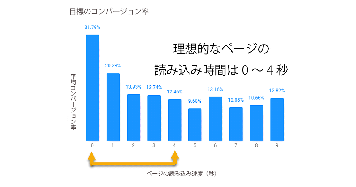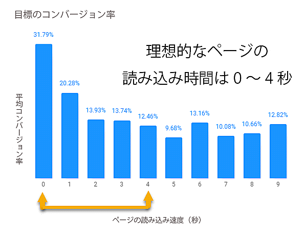 1秒以内に読み込まれるページは、5秒以上かかるページに比べて、コンバージョン率が約2.5倍高くなる。