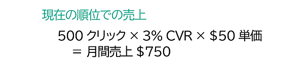 このウィジェット1件あたりの売上が50ドルであることは変わらない。したがって、このページは毎月オーガニック検索から約1200ドルを得ることになる。このページが3位だった頃と比べて、1か月あたり約450ドル増加した。