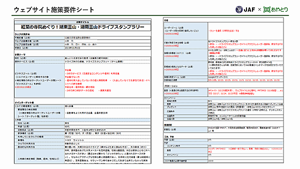 また、ガイドラインの付録として各種ワークシートの整備も行われた。たとえば「施策要件シート」。新規コンテンツを作ったり、プロモーションを始めたりするとき、その目的やターゲットをしっかり言語化し、ユーザー目線で企画を進めるために活用している。