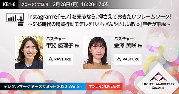弊社の人気書籍シリーズ、『いちばんやさしい教本』の筆者でもある甲斐さんが登壇する講演です! SNSでモノを売るって、しっかりユーザーの購買行動がわかっていないとなかなか難しいですよね。具体的なマーケティング戦略の立て方が知りたい、購買につなげるInstagram活用法を知りたい方は、ぜひ聞いてみてください。