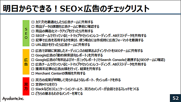 最後に明日からできる広告×SEOのチェックリストを提示し、セッションを締めくくった。