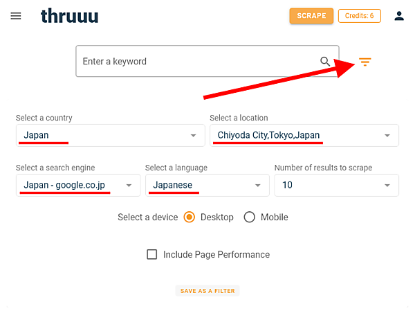 キーワード指定ボックス横のアイコンから、日本向けの設定もいくつかできる: