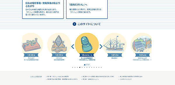 電気の歴史については、すでにインターネット上に情報が溢れているが、がいしの歴史については見かけない。だからこそ、日本ガイシが取り組むべきだと考えたという。そこで2019年に創立100周年を迎えた際に制作された社内教育用の資料を、社外向けに再編集。当初は『「がいし」とは』内の1コンテンツを予定していたが、かなりのボリュームとなったため、別サイトとして企画し直した。サイト制作にあたっては、次のような工夫をこらした: