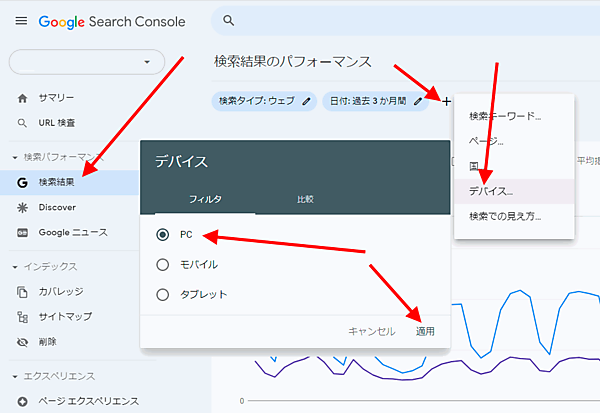 - [デバイス]で「PC」にフィルタして