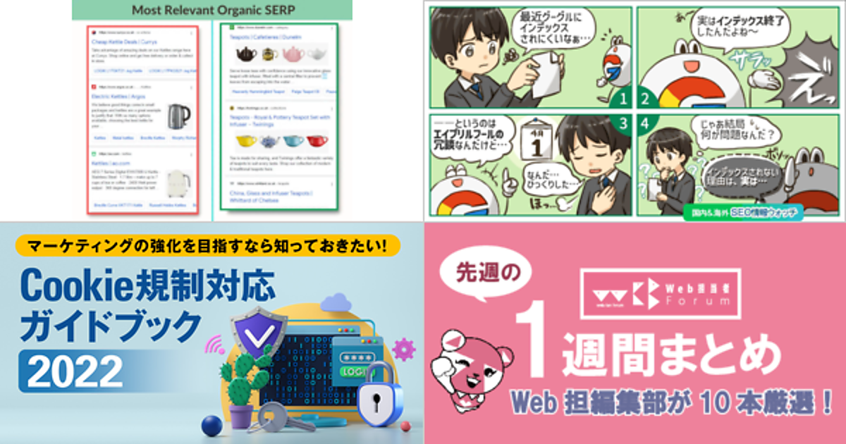 Web 担当者 Forum に掲載された情報を毎週一度、まとめてご紹介するこのコーナー、今回は解説記事 5 本とニュース記事 5 本です。