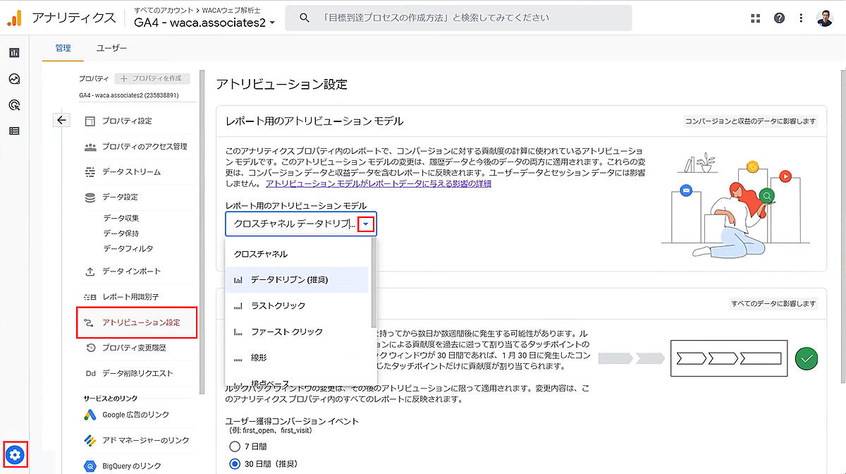 日々進化するGA4であるため、書籍出版後にもアップデートがある。小川氏は覚えておいてほしい点としてレポート用のアトリビューションモデルを挙げる。コンバージョンした時に、UAでは貢献したページを「ラストクリック」としていたが、現在GA4に登録するとデフォルトで「データドリブン」が選択されている。