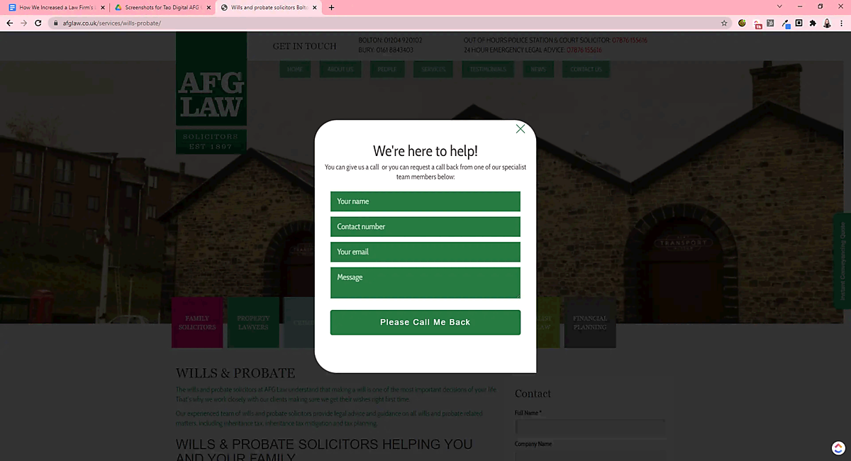 2020年9月には、AFGのサイトをリード追跡ソフトウェアWhatConvertsに紐付けた。これにより、サイト上で訪問者1人ひとりに固有の電話番号を作成することで、どのページが実際の通話につながったかを正確に記録できるようになった。また、サイトにおけるフォームの入力も分析できる。