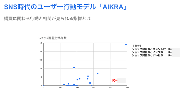 では、どの指標が売上と相関するのか? その最有力候補が、すでに述べたように「保存数」だ。保存数が多いとInstagramの「ショップ」閲覧数も多い可能性が高く、他の「コメント数」「インプレッション数」と比較しても統計上優位な傾向が出ている。