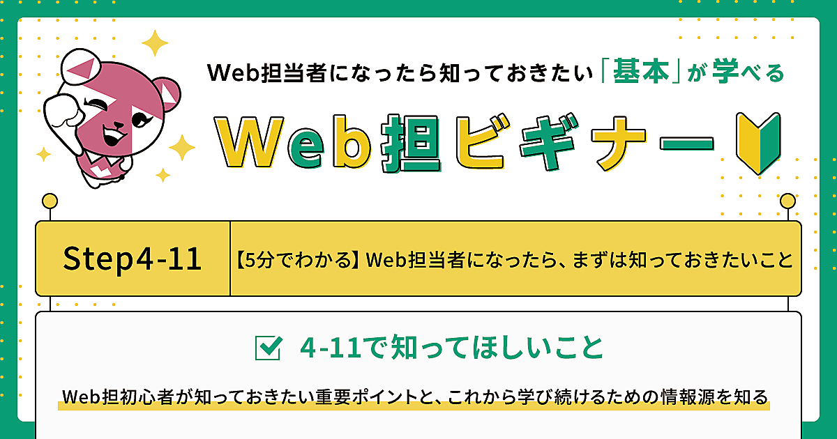 2021年4月から始まった連載「Web担ビギナー」では、Web担当者になったばかりという方に、基礎知識や知識習得のコツ、仕事を行う上で心がけたいことなどを、4つのステップに分けて解説してきました。