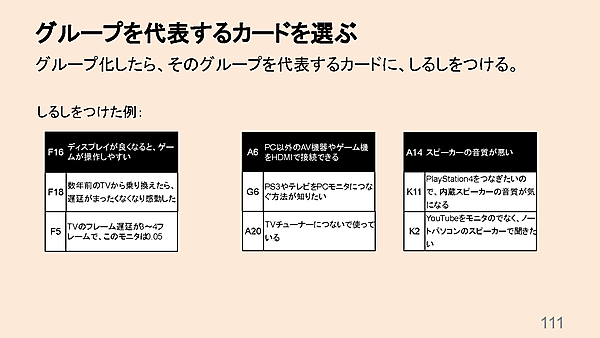 親和図法・ステップ3グループを代表するカードを選ぶ