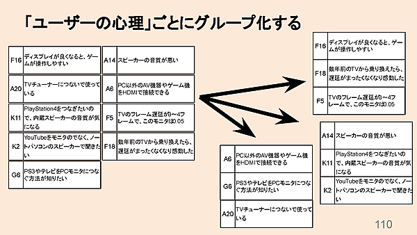 親和図法・ステップ2ユーザー心理毎にグループ化